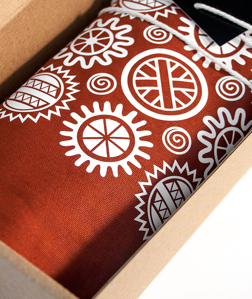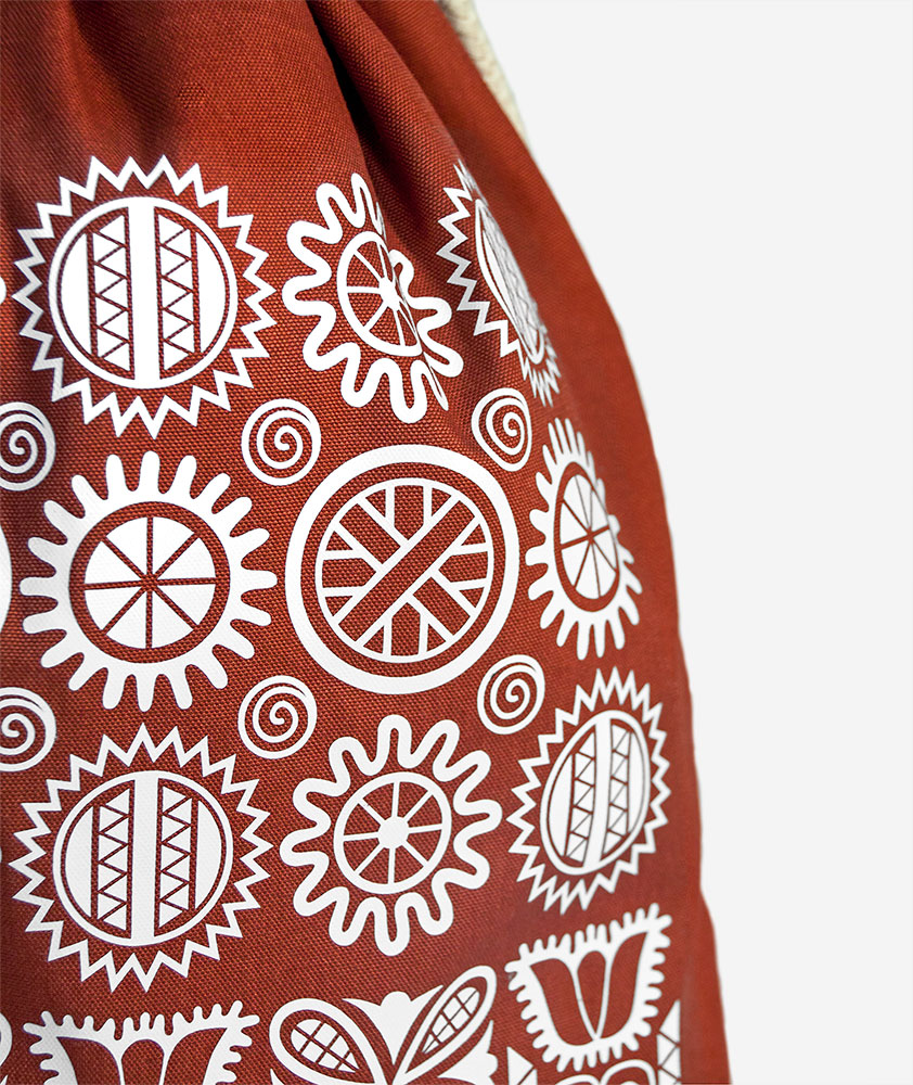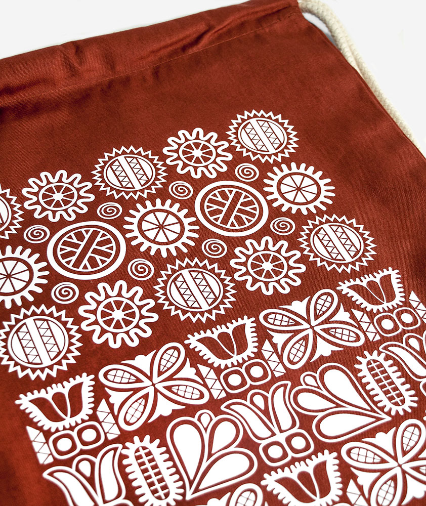 Na tehlovo oranžový sťahovací batoh s folklórnym motívom Na tej Detve sme použili ornamentiku s pôvodom zo stredného Slovenska, priamo z mesta Detva. Detvianske tradičné geometrické a florálne vzory sme usporiadali do nových polôh a obohoťali ich o drobné nové prvky, čím sme umožnili vznik nových originálnych motívov Detvianskej kolekcie. Ornamentika Na tej Detve svojím názvom odkazuje na tradičnú ľudovú pieseň o murovanej studničke, vzor prinášame na tričkách i vakoch v rôznych farebných prevedeniach. Praktické sťahovacie batohy zo 100% bio bavlny posielame v darčekových ručne maľovaných krabičkách.