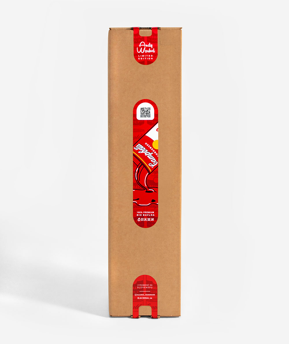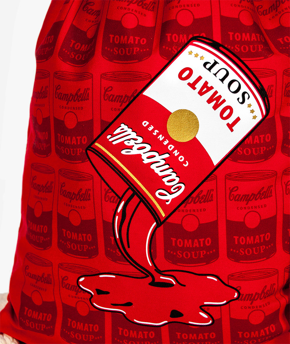 Bavlnený vak s najznámejším motívom Andyho Warhola. Warhol vytvoril sériu Campbellových polievok (Campbell’s Soup) v roku 1961. Výstava Warholových polievok v roku 1962 bola debutom pop artu na západnom pobreží. Warhol vytvoril širokú škálu umeleckých diel zobrazujúcich plechovky polievok Campbell’s Soup počas troch odlišných fáz svojej kariéry a vytvoril ďalšie diela s použitím rôznych obrazov zo sveta obchodu a masmédií. Vak vychádza v limitovanom množstve. Posielame v darčekovom tubuse.