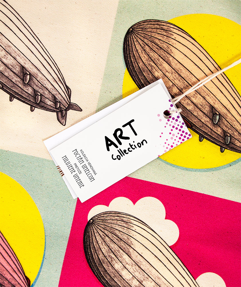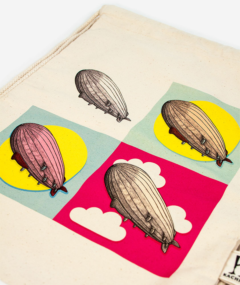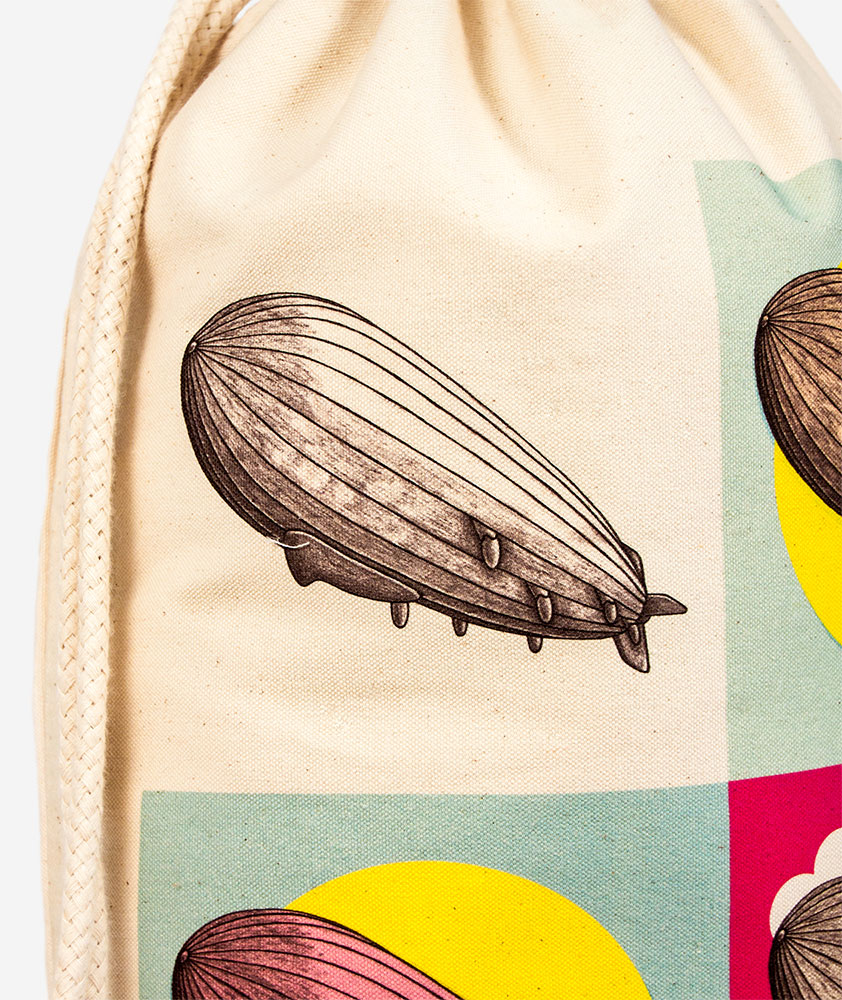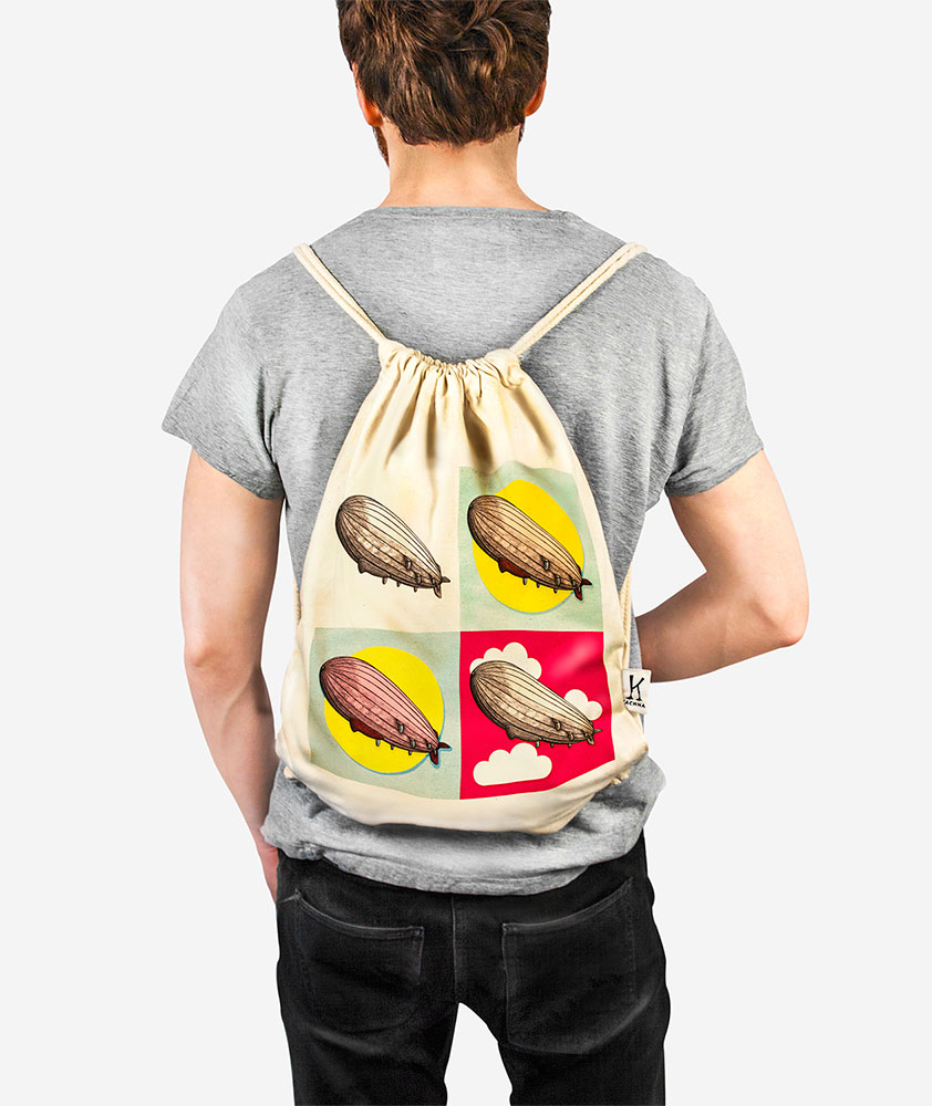 Bavlnený vak s motívom inšpirovaným sériou sieťotlačí s portétom Marilyn Monroe, ktorú vytvoril slávny umelec pop-artu Andy Warhol. Séria vznikla na konci šesťdesiatych rokov. Motív zobrazuje pôvodne ručne kreslenú vzducholoď v štyroch rôznych farebným prevedeniach.