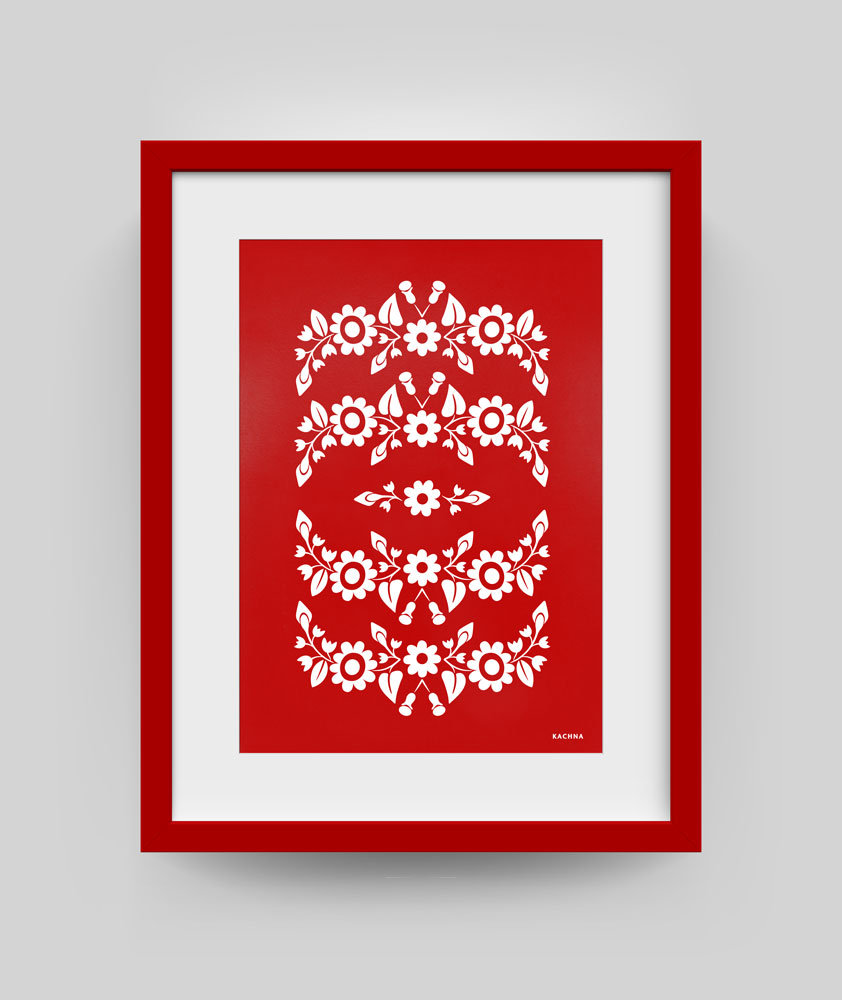 Umelecký print s folklórnym motívom Trenčianske kvietky, ktorý má svoj pôvod v obci Trenčianske Stankovce, neďaleko Trenčína. Jedná sa o moderné prevedenie pôvodnej florálnej výšivky miestneho ľudového kroja. Ľudové vzory z regiónu Trenčín prinášame na viacerých výrobkoch v rôznych farebných prevedeniach. Posielame v darčekových krabičkách.