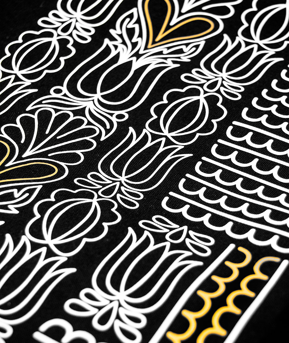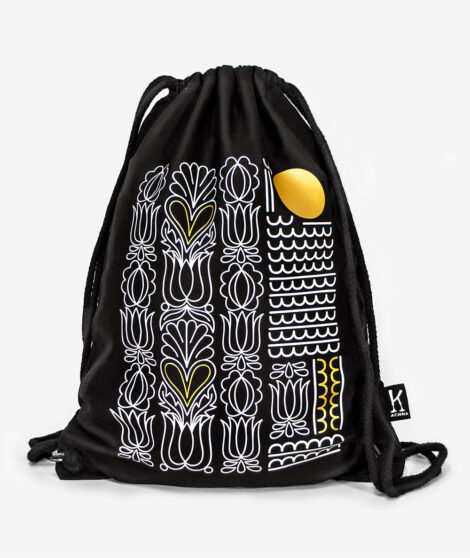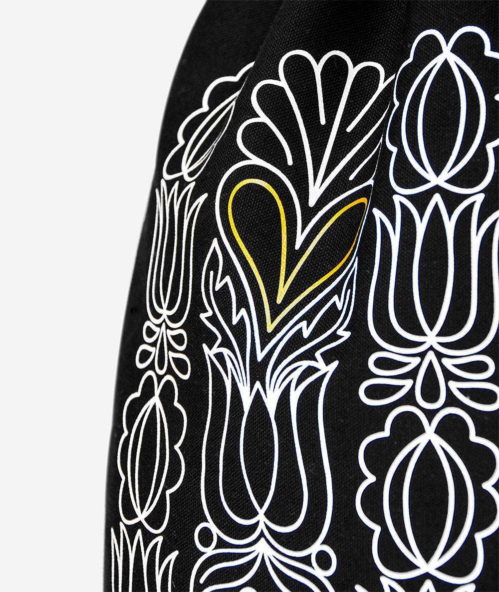 Bavlnený batoh Solis s moderným poňatím tradičného folklórneho vzoru pochádzajúceho z oblasti Trnavy vychádza v limitovanom minimálnom množstve ako súčasť luxusnej kolekcie Gold & White, ktorá je kombináciou zlato-bieleho vzoru na čisto čiernom podklade. Pozri aj ostatné veci z limitovanej kolekcie GOLD & WHITE.