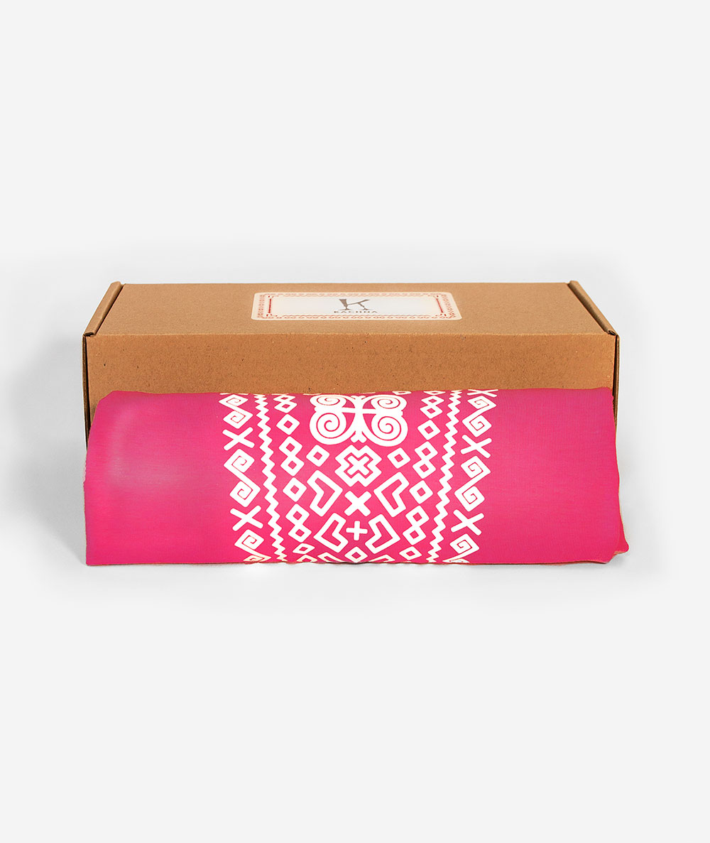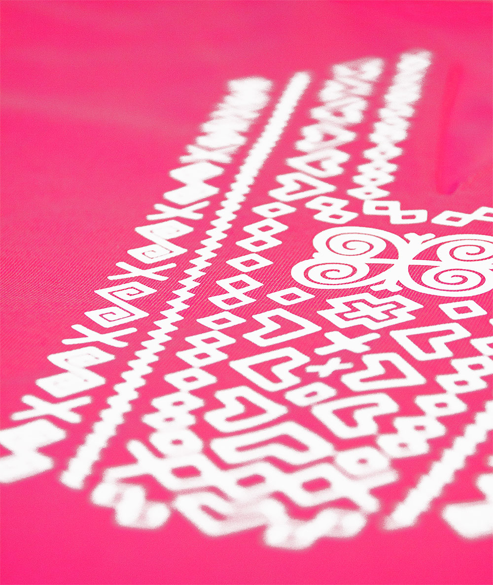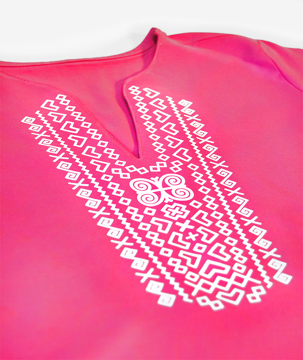 Dámske cyklámenové tričko s folklórnym motívom Čičmany. Limitovaná edícia, iba 1 kus s typickým ľudovým výstrihom a tradičným ornamentom. Pozri aj ostatné vecičky z kolekcie Čičmany.