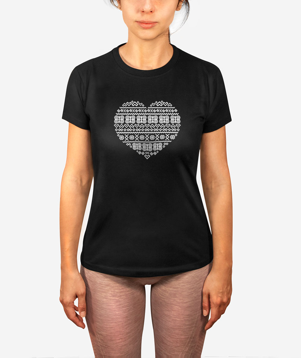 Čierne dámske tričko s folklórnym motívom pochádzajúcim z najznámejšej malebnej dedinky na Slovensku so zachovalou ľudovou architektúrou. Tradičná čičmanská ornamentika usporiadaná do tvaru bieleho srdca robí z trička ideálny darček pre Vašu milovanú partnerku, tričko sa skvelo hodí ako pozornosť na Valentína. Dodávame v ručne maľovaných darčekových krabičkách.