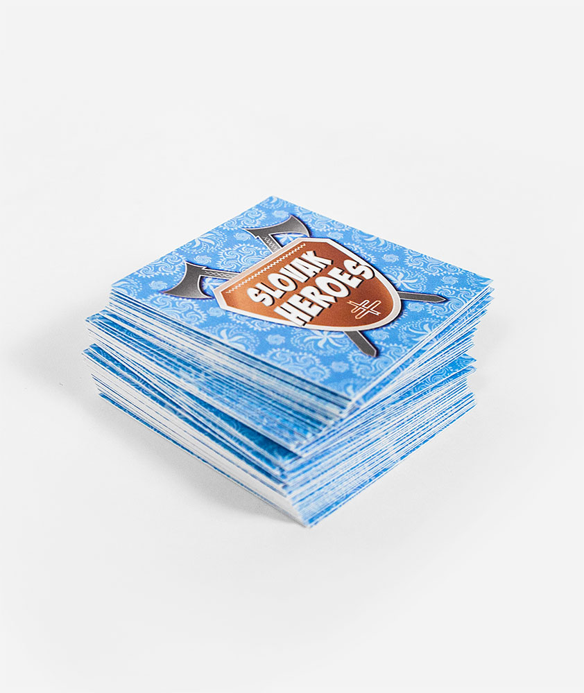Pexeso tlačíme na kvalitný grafický papier (350g/m²), ktorý následne laminujeme, vďaka čomu sú kartičky odolnejšie a je ich možné očistiť vlhčenou utierkou.