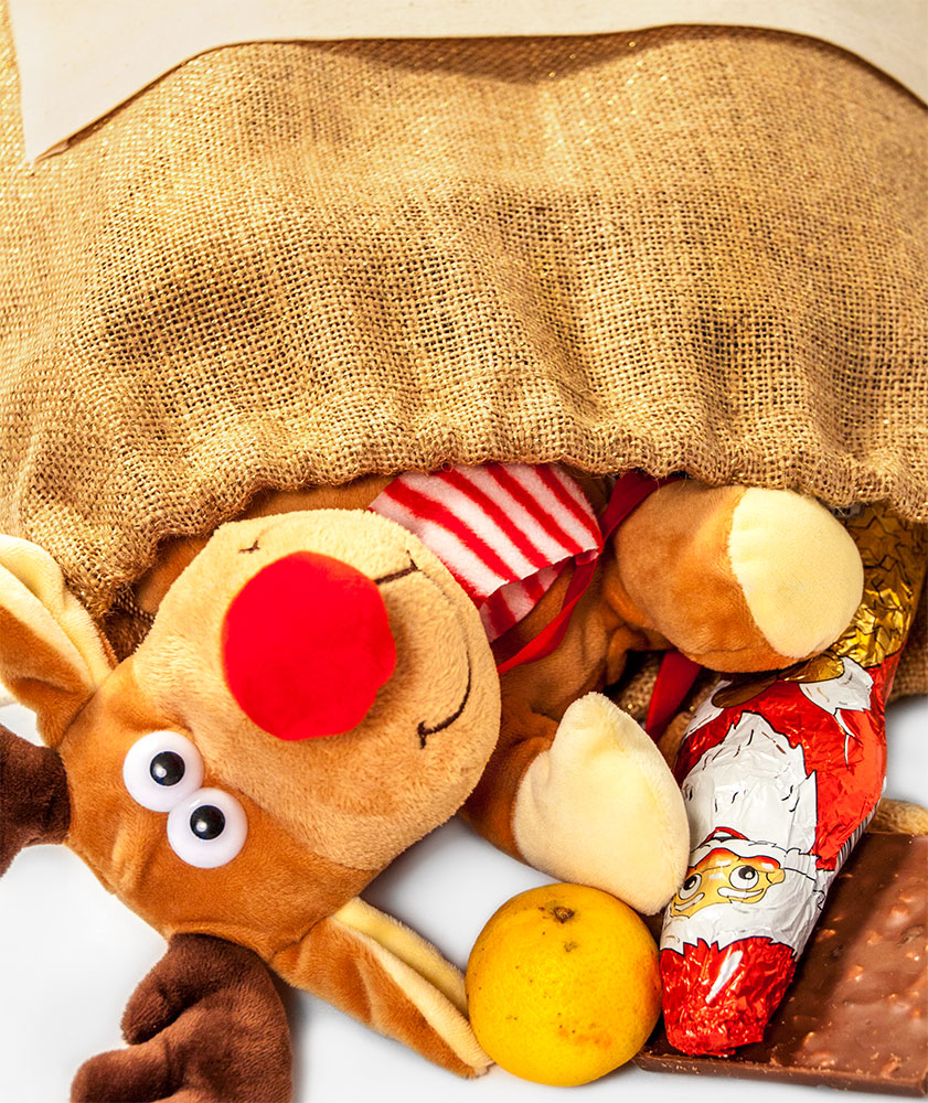 100% ekologický produkt, vyrobený zo 100% prírodnej juty, pretkanej zlatou niťou. Kvalitná potlač s dlhou životnosťou na prednom bavlnenom vrecku. Sťahovacie jutové vrecúško môže byť po sviatkoch využité na uskladnenie mikulášskych či vianočných dekorácií. Čokoládové a iné dobroty nie sú súčasťou balenia.