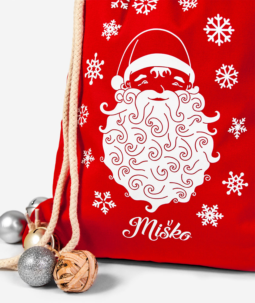 Bavlnený mikulášsky vak dostupný v dvoch farebných prevedeniach. Podarujte mikulášske dobroty v originálnom darčekovom vaku s Mikulášom a menom obdarovaného. Po sviatkoch môže byť vak využitý na uskladnenie mikulášskych či vianočných dekorácií, ale i ako praktický batôžtek.
