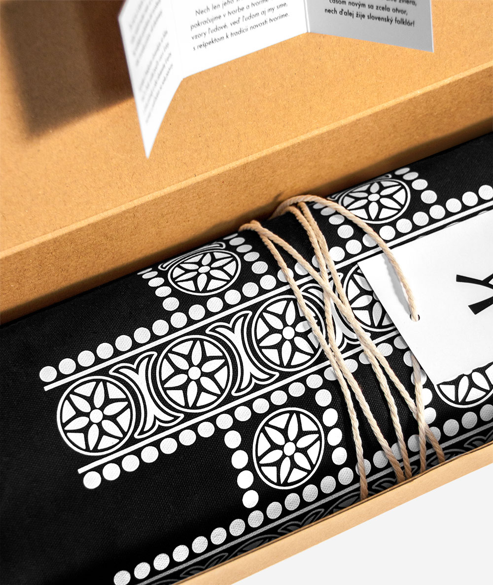 Na čierny sťahovací vak s folklórnym motívom Detviansky hashtag sme použili ornamentiku s pôvodom zo stredného Slovenska, priamo z mesta Detva. Detvianske tradičné geometrické a florálne vzory sme usporiadali do nových polôh a obohoťali ich o drobné nové prvky, čím sme umožnili vznik nových originálnych motívov. Ornament spájajúci tradičnosť folklóru s modernosťou súčasnej doby Detviansky hashtag prinášame na tričkách i vakoch v rôznych farebných prevedeniach. Praktické sťahovacie batohy zo 100% bio bavlny posielame v darčekových ručne maľovaných krabičkách.