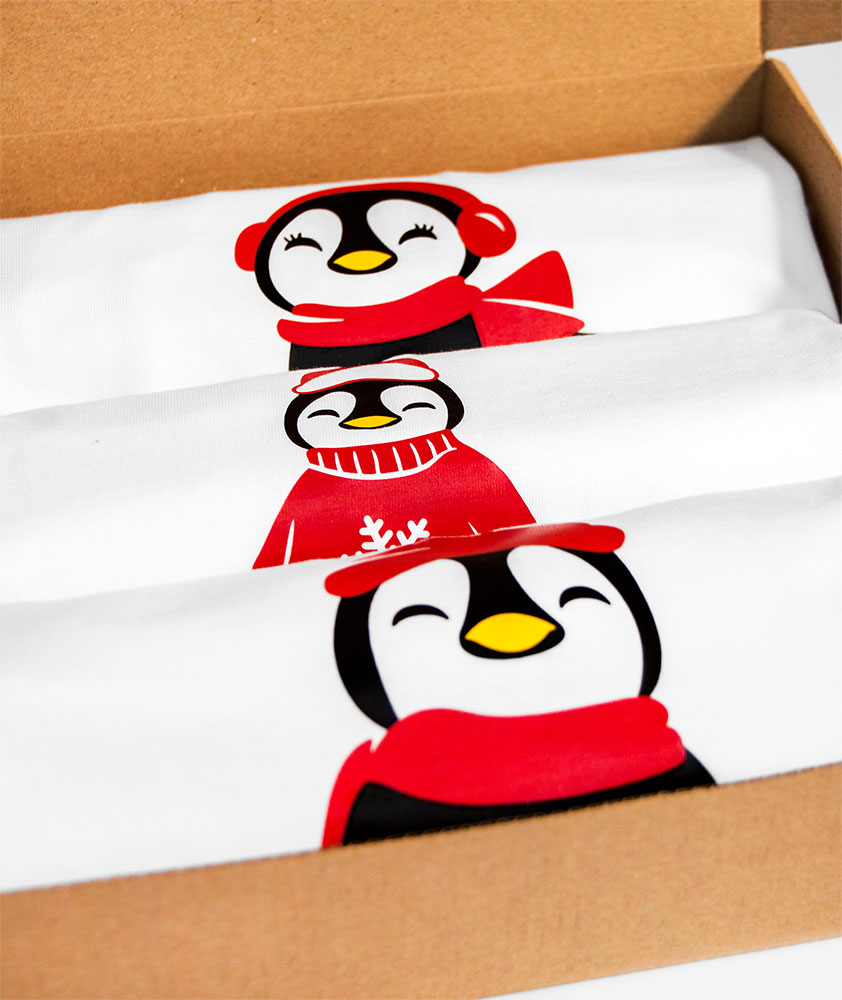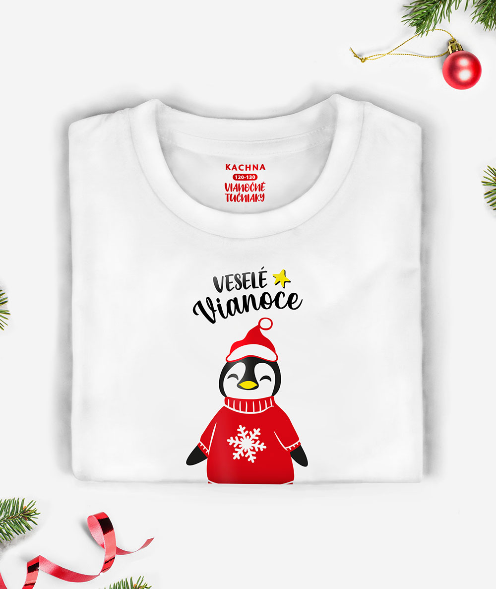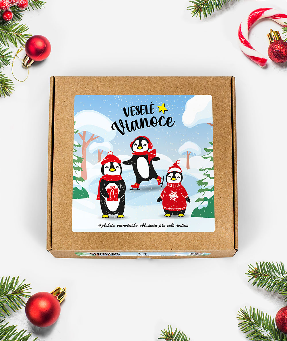 Kolekcia vianočného oblečenia s členmi rodinky Tučniačikov. Kolekciu je možné vyskladať z ľubovoľných typov jednotlivých tričiek. V ponuke sú pánske, dámske i detské tričká a taktiež detské bodyčká pre tých najmenších. Vianočné tučniaky dopĺňa nápis Veselé Vianoce. Kolekciu posielame v krásnej vianočnej krabičke.